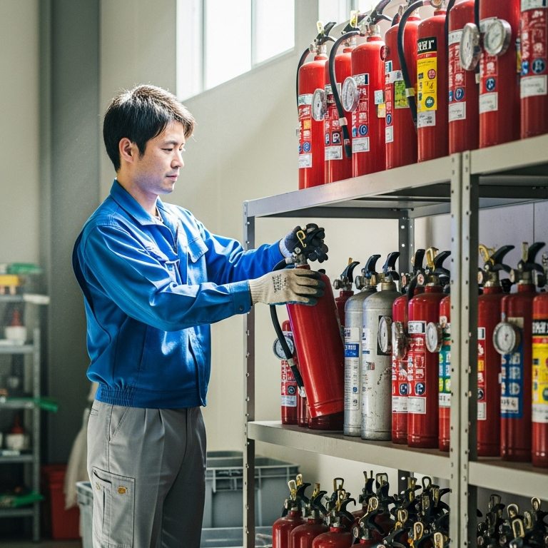 日本では「廃消火器リサイクルシステム」が存在し、特定窓口や指定引取場所を通じて安全に処分できます。